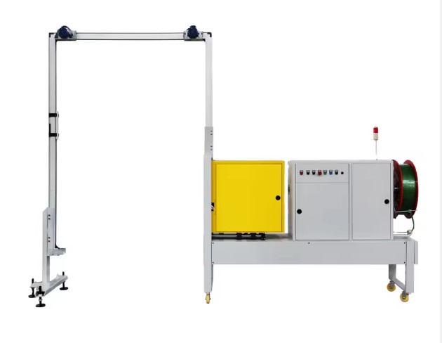 Design priorities include structural stiffness, component accessibility, and compatibility with established packaging layouts. The chassis uses aluminum alloy sections to balance rigidity and mass, supporting accurate strap tracking with minimal drift. A clear arch of 1500 × 2000 mm accommodates common pallet heights and overhangs, while overall dimensions of 3890 × 640 × 2200 mm facilitate alignment alongside conveyors and pallet turntables. The strapping path is optimized for PP 13 mm strap, with controlled guides to reduce friction and prevent twist. Electrical architecture with PLC control supports handshakes to line controls, enabling queue management and fault signaling. The interface panel provides discrete selectors for strap count and manual functions for diagnostics. These elements improve integration predictability, reduce commissioning time, and allow the machine to operate within a wide range of standard industrial layouts.