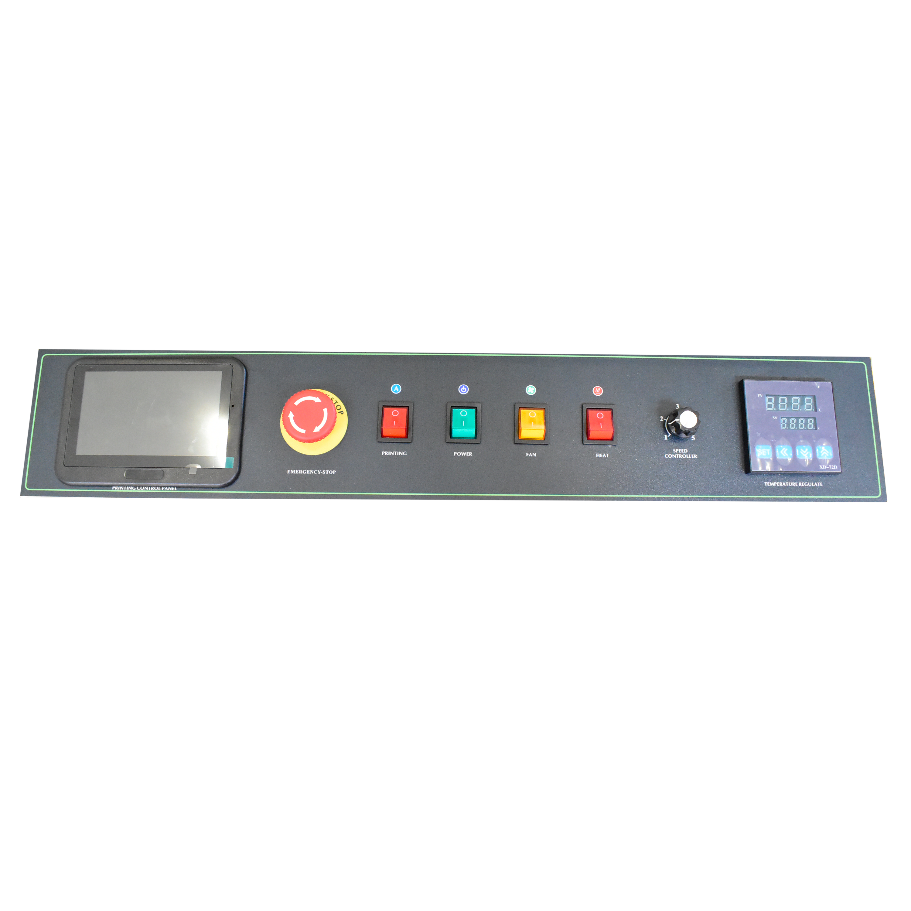 It includes an emergency stop switch and a protective grounding system.