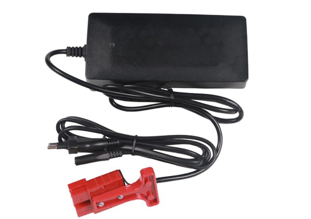 Gaffeltrucken leveres med en integrert lader som kobles til en standard strømforsyning for enkel og sikker lading.